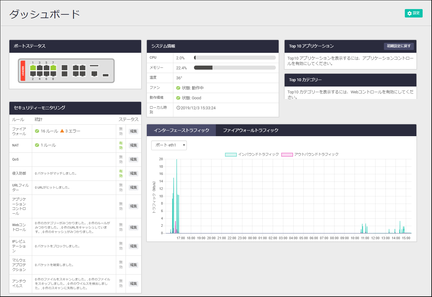 NoteWeb GUI画面を開いてから長時間操作をしない状態が続くと、画面表示が正しく行われなくなることがあります。その場合は Web GUIからいったんログアウトし、ログインしなおしてください。