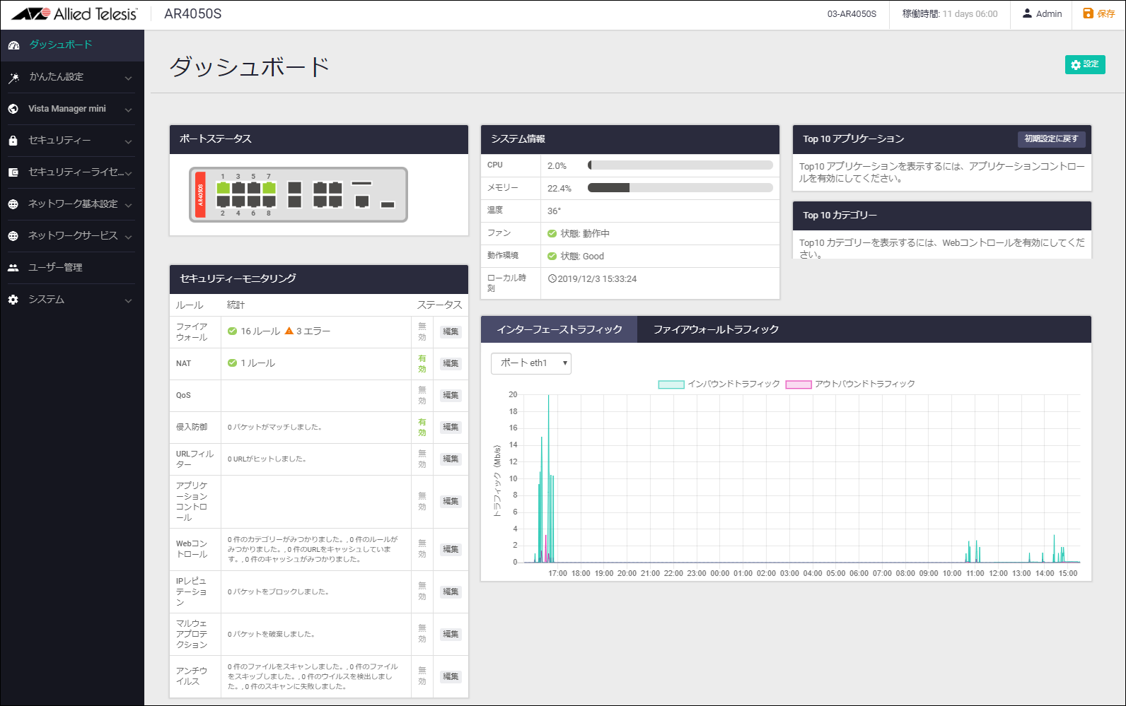 NoteセキュリティーライセンスメニューはAT-AR2050Vでは表示されません。