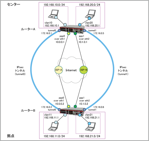 | WAN側IPアドレス | 10.1.0.1 | 10.1.0.2 |