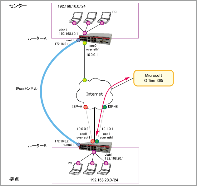 | WAN側IPアドレス(1) | 10.0.0.1/32 (ppp0) | 10.0.0.2/32 (ppp0) |