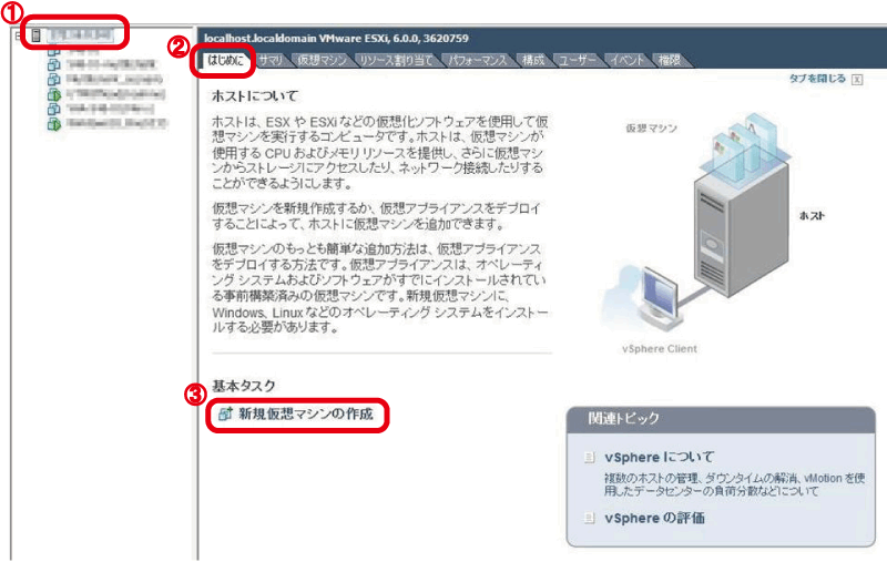 Note本解説編で説明している作業の大部分は、vSphereのGUI管理ツールであるVMware vSphere Client(以下vSphere Client)を使って行います。vSphere ClientからESXiサーバーに接続する方法、vSphereの全般的な使用方法などについては、各製品のマニュアル等をご参照ください。