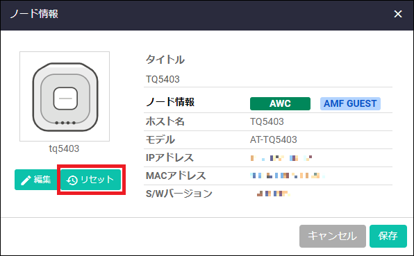 Note該当ノードがAMFゲストノードかつ無線LANコントローラーで管理されている場合、ノードリストの種類(Type)にはAWCと表示されます。