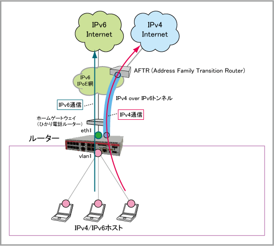| LAN側(vlan1)IPv6アドレス | DHCPv6 PDで取得したIPv6プレフィックスにもとづいて設定 |