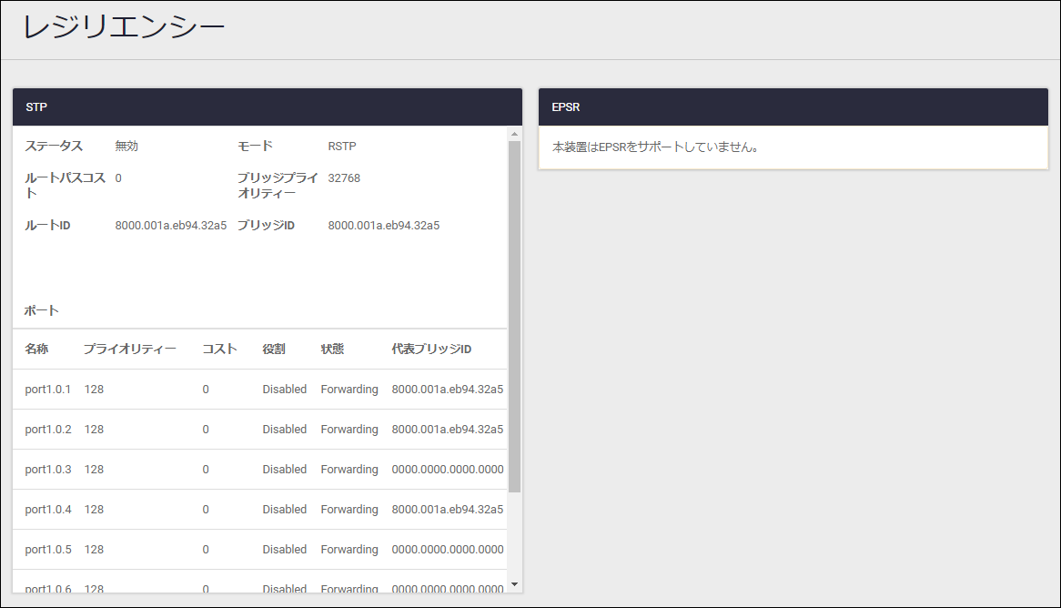 | ステータス | スパニングツリープロトコルの有効・無効が表示されます |