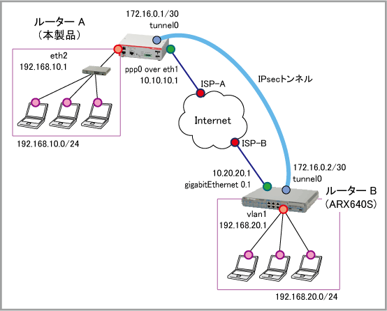 | WAN側(ppp0)IPアドレス | 10.10.10.1/32 | 10.20.20.1/32 |