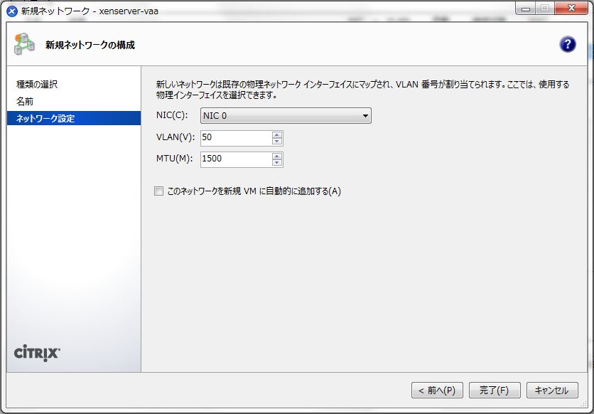 - XenServerホスト仮想ネットワークの設定