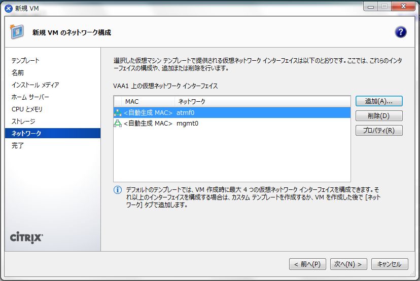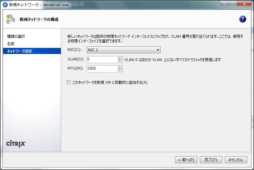 次に、XenServer仮想ネットワークの設定を行います。