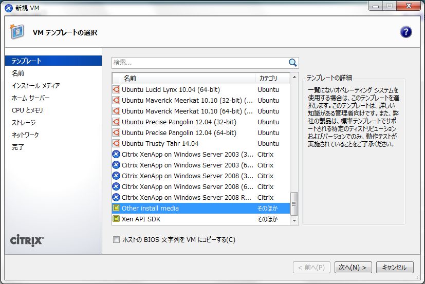 XenServer仮想マシンの作成