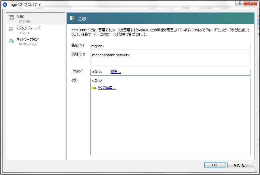 - 「名前」を「ネットワーク 0」から「mgmt0」に変更し、「説明」に「Management Network」と入力して、「OK」をクリックします。