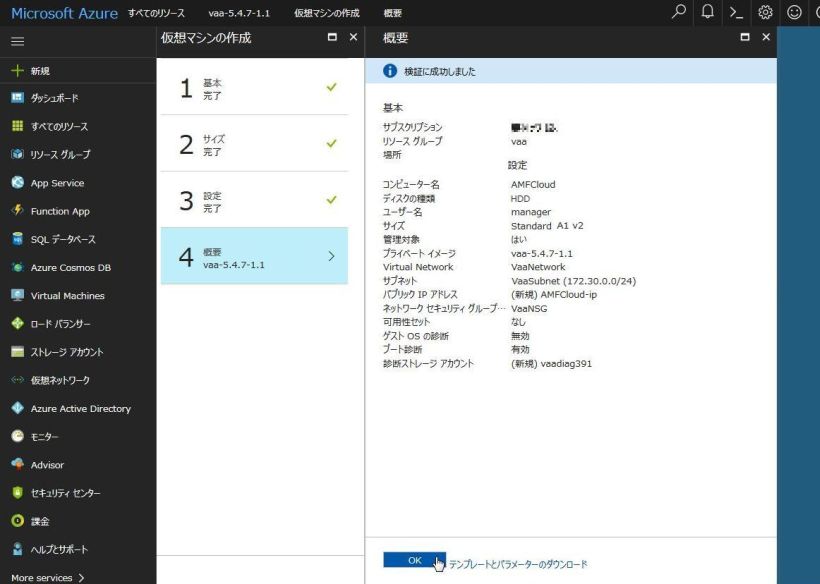 - これでカレントディレクトリーにVHDイメージファイル「vaa_azure-5.4.9-2.3.vhd」が準備できました。