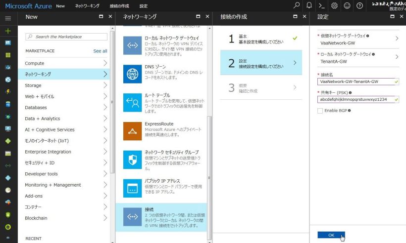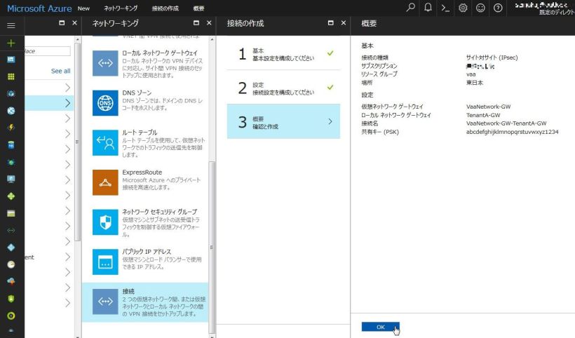 abcdefghijklmnopqrstuvwxyz1234(テナントAネットワーク側のVPNルーターにも同じ値を設定します。これはサンプルですので、実際には適切な値を入力してください) |