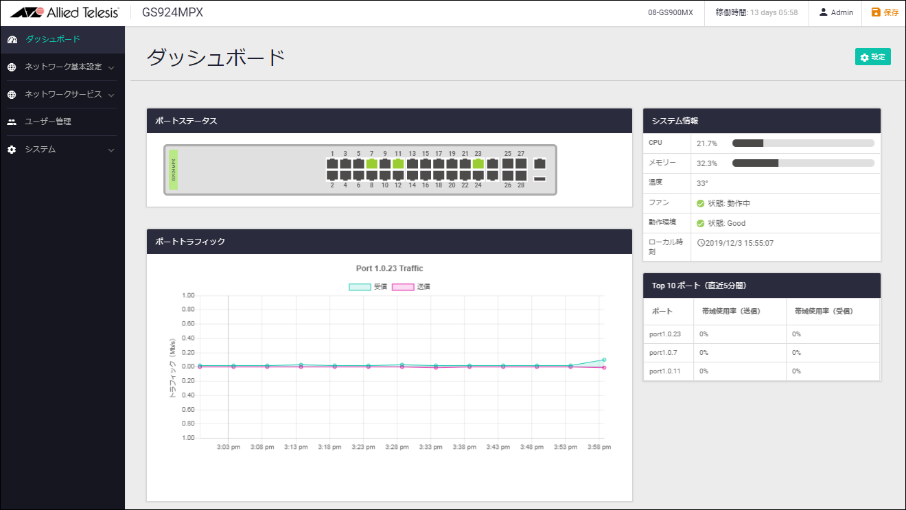 Web GUIの画面、メニュー構成、機能などは、製品機種やファームウェア、GUIファイルのバージョンによって異なる可能性があります。