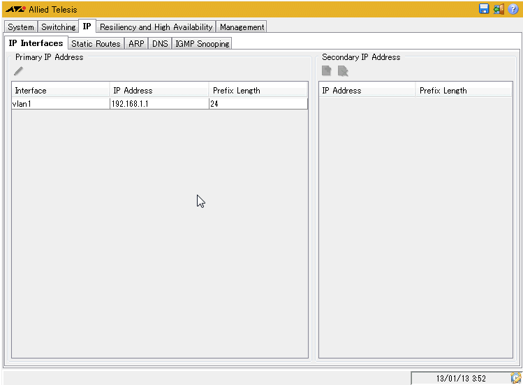 | Secondary IP Address | セカンダリーIPアドレスの表示設定を行う |