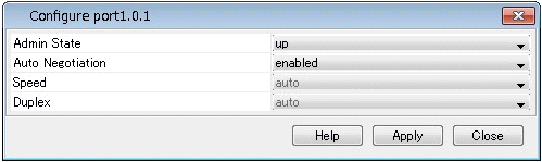 | Speed | 通信速度(10 Mbps、100 Mbps、1000 Mbps、auto)をドロップダウンリストから選択 |