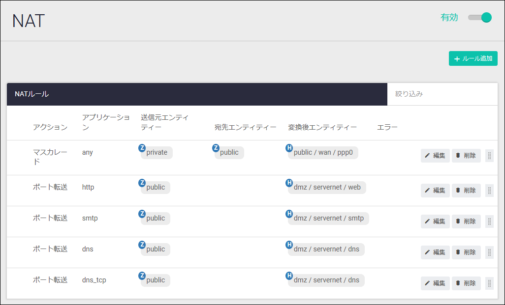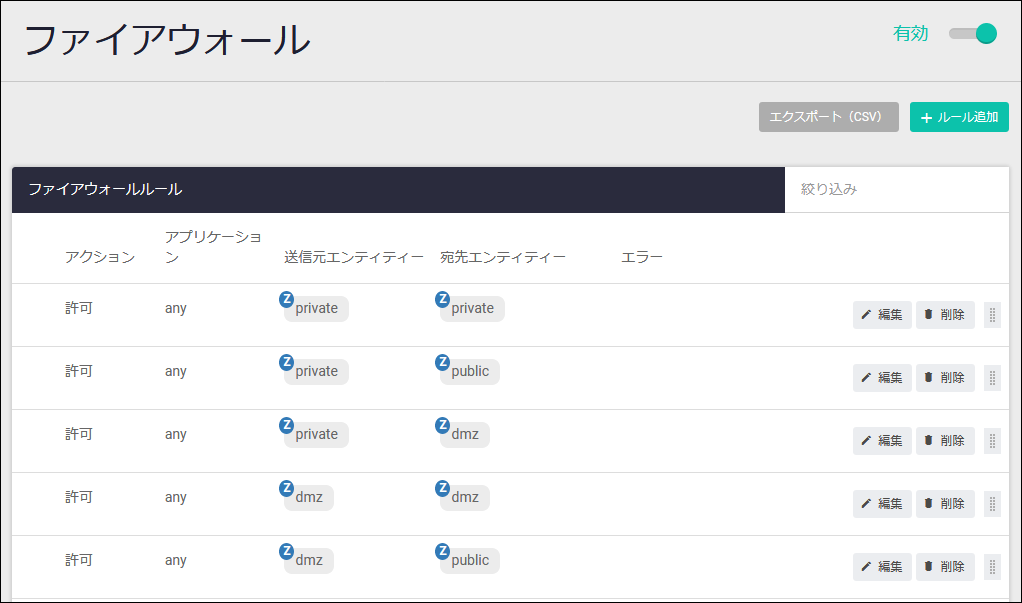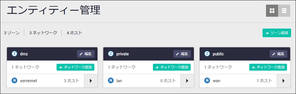 | ゾーンに割り当て | 該当ネットワークの追加先ゾーンが表示されます |