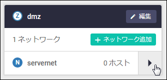 | (N) servernet Xホスト ▶ | ゾーンに所属するネットワークの名前(例ではservername)と該当ネットワークに所属するホストの数(X)が表示されます。右向き三角をクリックすると、該当ネットワークの情報に表示が切り替わります。 |
