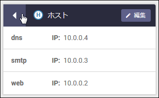 | ◀ (H) ホスト | 左向き三角をクリックすると、該当ホストが所属しているネットワークの情報に表示が切り替わります |