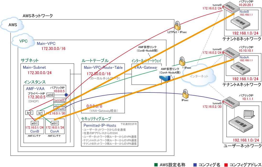 ここでは、本社側のHQ001はすでにAMFの基本設定が行われており、運用中であると仮定しています。一方、支社側のBR101は通常動作については運用中ですが、AMFは未設定と仮定します。