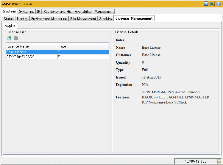| License Details / Features | 有効化されているライセンス |