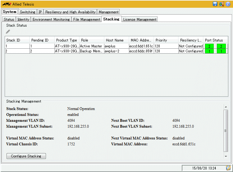 | Stacking Management / Virtual MAC Address Status | バーチャルMACアドレスのステータス |