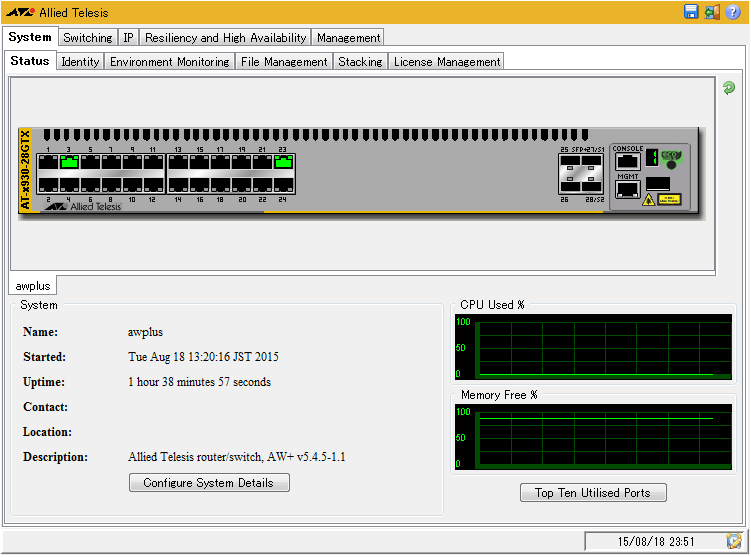 | Stacking Management / Stack Status | スタックメンバーの情報を表示(スタックメンバーが接続されていないと、Warningが表示される) |