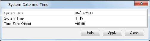 | Change date and time settingsアイコン | System Date and Timeダイアログを開く |