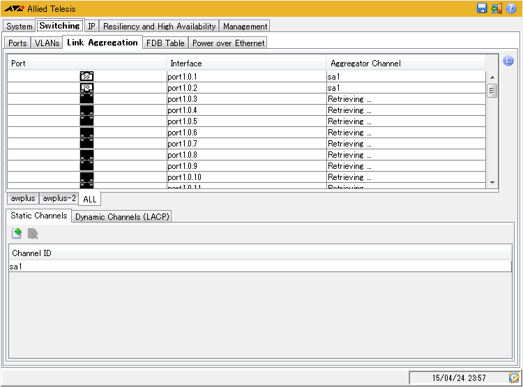 | Dynamic Channels | (LACP) 手動設定のトランクグループ(チャンネルグループ)番号が表示される |