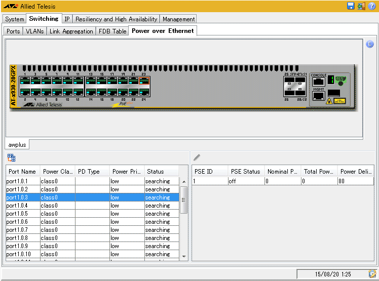 | PD Type | 受電機器に関する説明文(power-inline descriptionコマンドまたは Configure Port ダイアログ(後述)で設定した文字列) |
