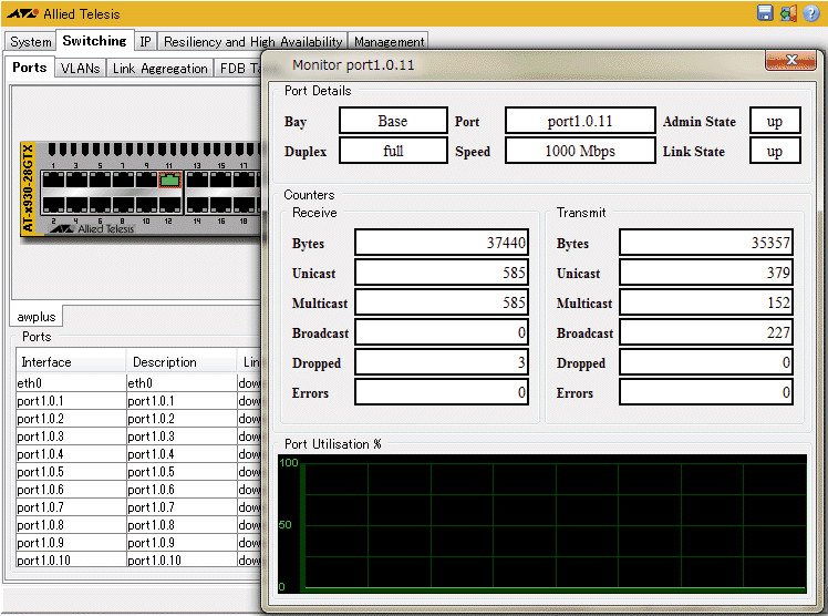 | Port Utilisation% | ポートの使用状況をパーセントのグラフで表示 |