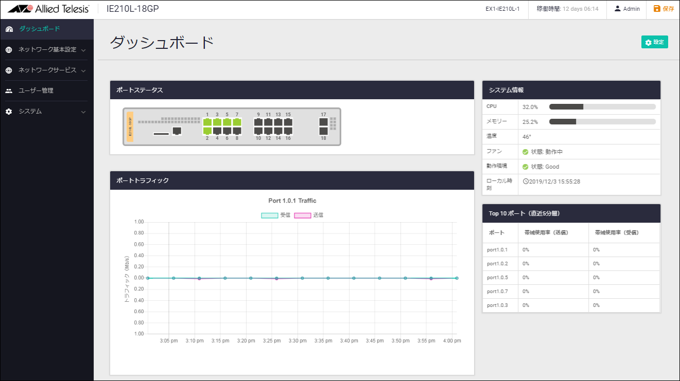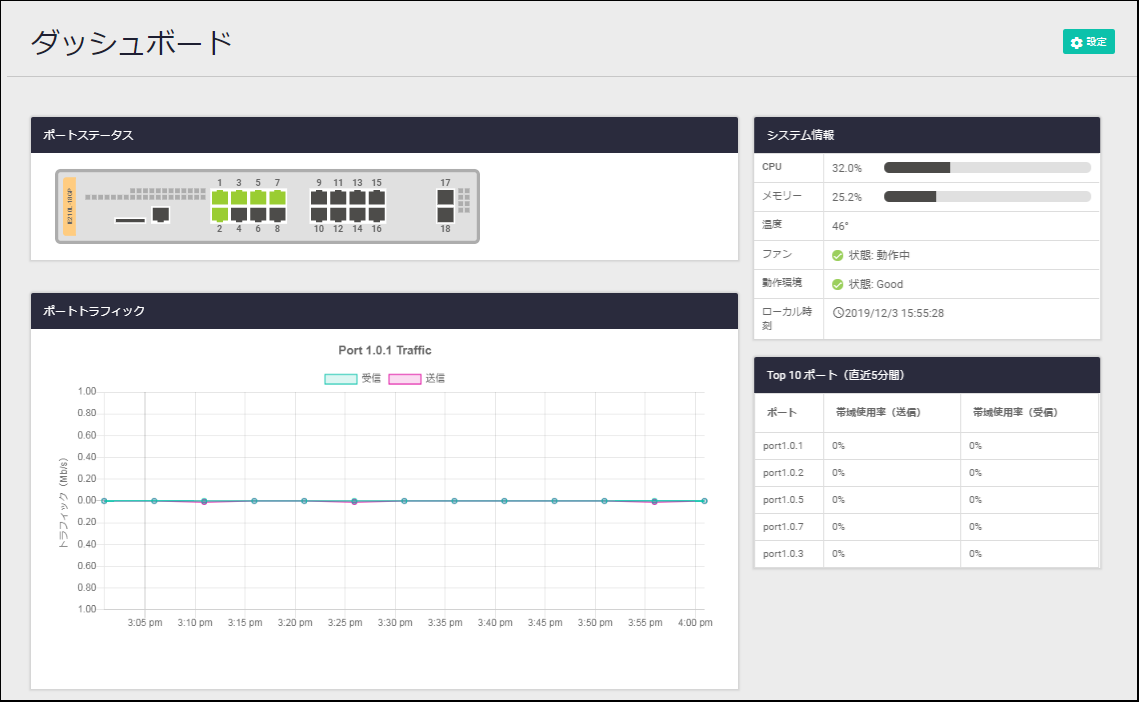本製品に対する設定は通常 CLI(Command Line Interface)で行いますが、WebブラウザーからGUI(Graphical User Interface)にアクセスして、本製品の動作状態をモニタリングしたり、基本的な機能の設定を行ったりすることも可能です(CLI上で可能な設定がすべてできるわけではありません)。