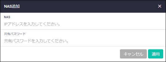 | NAS | 追加するNASのIPアドレスを入力してください |
