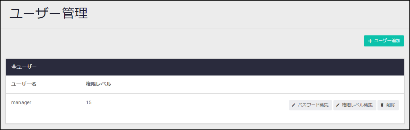 | ユーザー追加ボタン | 新規ユーザー追加ダイアログが開きます |