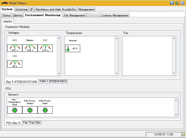 | Expansion Modules | 拡張モジュールの電圧状態(Voltage)、温度状態(Temperature)、ファンの状態(Fan)が表示される |