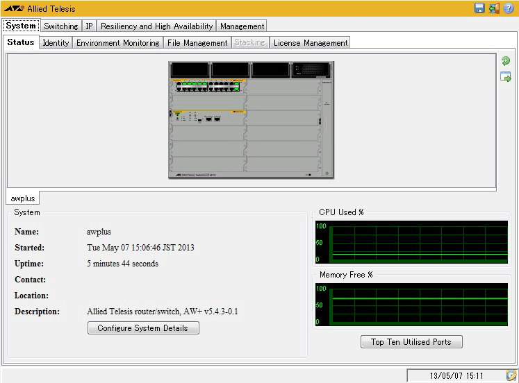 | Stacking Management / Stack Status | スタックメンバーの情報を表示(スタックメンバーが接続されていないと、Warningが表示される) |