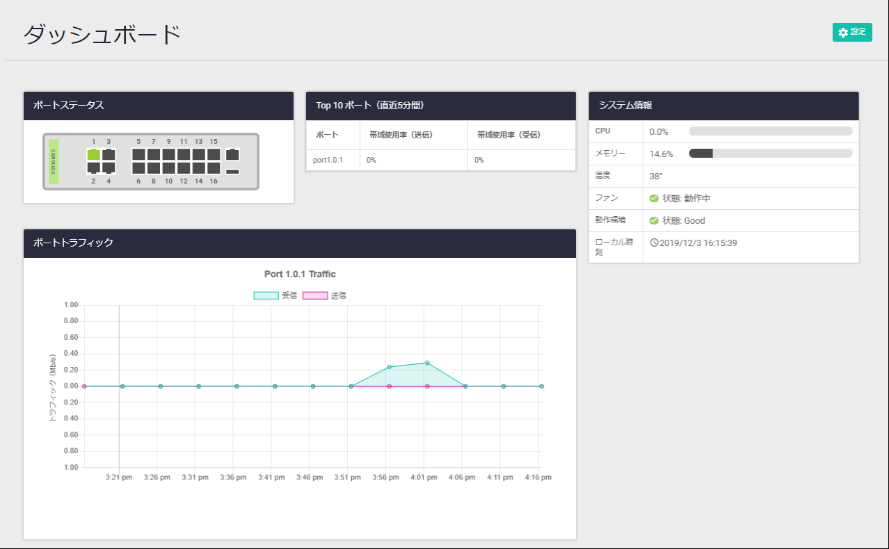 本製品に対する設定は通常 CLI(Command Line Interface)で行いますが、WebブラウザーからGUI(Graphical User Interface)にアクセスして、本製品の動作状態をモニタリングしたり、基本的な機能の設定を行ったりすることも可能です(CLI上で可能な設定がすべてできるわけではありません)。