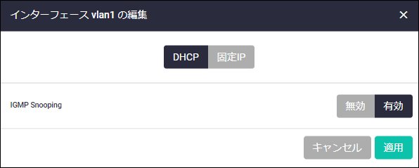 | IGMP Snooping | (VLANインターフェースのみ)対象インターフェースでIGMP Snoopingを使用するかどうかを選択してください |