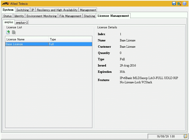 | License Details / Features | 有効化されているライセンス |
