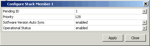 | Stack Status / Priority | スタックプライオリティー(0-255。小さいほど優先度が高い)。優先度が等しい場合は、MAC アドレスの小さいほうがマスターに選出される |