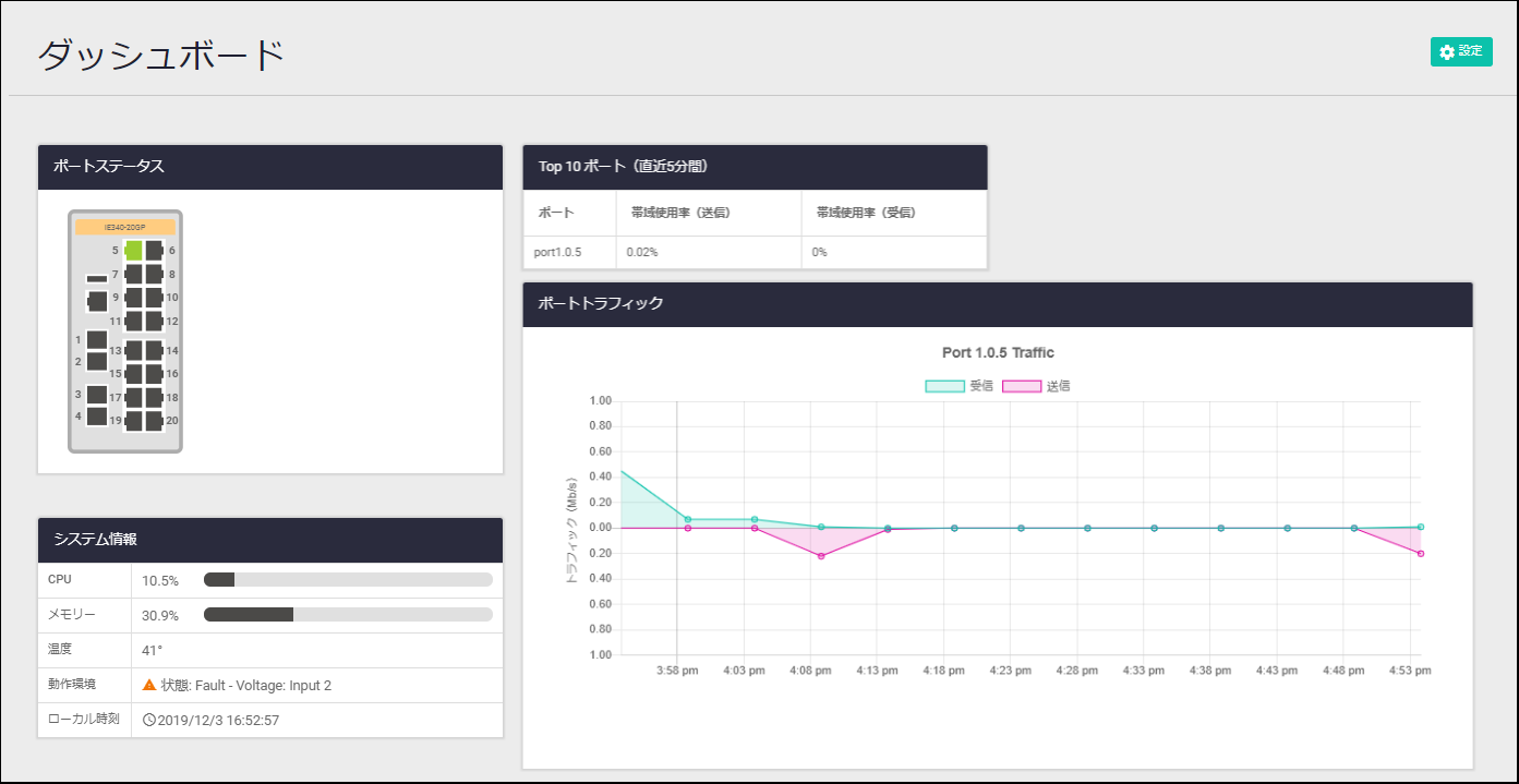 ログイン直後は、Web GUIのホーム画面であるダッシュボード画面が表示されます。