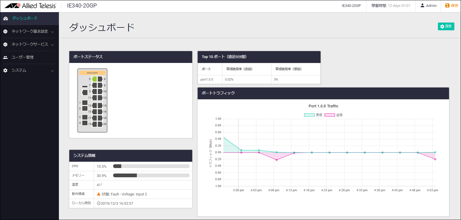 Web GUIの画面、メニュー構成、機能などは、製品機種やファームウェア、GUIファイルのバージョンによって異なる可能性があります。