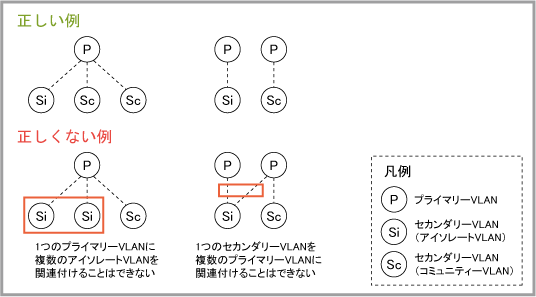 ■ プライマリーVLANとセカンダリーVLANの関連付けには以下のルールが適用される。
