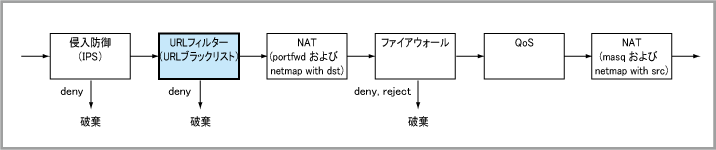 NoteHTTPSの通信では暗号化されたTLSセッション上でHTTPリクエストが送信されるため、アクセス先URLそのものを検査することはできません。ただし通常、TLSセッション開始時のClientHelloメッセージには接続先サーバーのドメイン名がSNIとして含まれるため、HTTPS通信に対してはこのドメイン名の情報を利用して処理を行います。