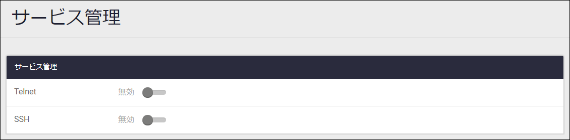 | Telnetスライドボタン | Telnetサーバーの有効・無効を切り替えます |