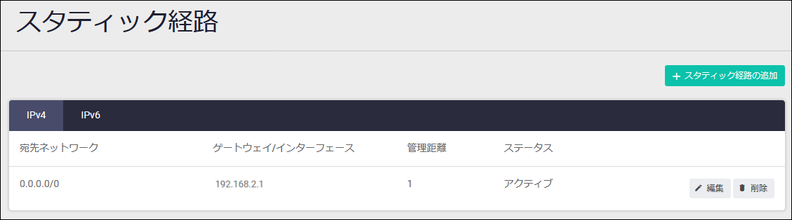 | 削除ボタン | スタティック経路を削除します。削除前には確認のダイアログが表示されます |