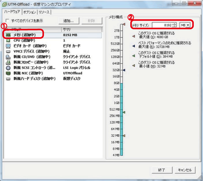 | ディスクコントローラー | 下記ドライバーで動作するもの ・PIIX4 IDE controller ・AHCI SATA controller ・BusLogic SCSI HBA ・LSI Logic SCSI HBA ・VMware PV SCSI HBA |