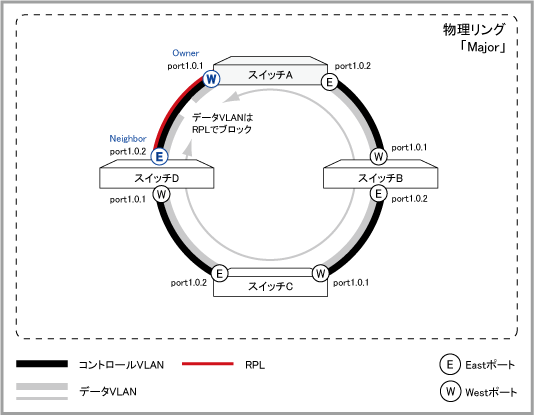 NoteG.8032のサブリングとEPSRのリングでは、それぞれ別のコントロールVLANを使用する必要があります。