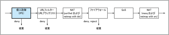 侵入防御(IPS)機能の処理は、ブリッジング用、ルーティング用の両インターフェースで受信したパケットに対して行われます。