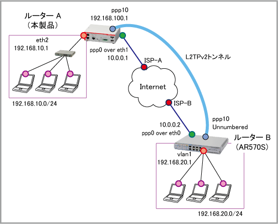 WAN側(ppp0)IPアドレス | 10.0.0.1/32 | 10.0.0.2/32 |
