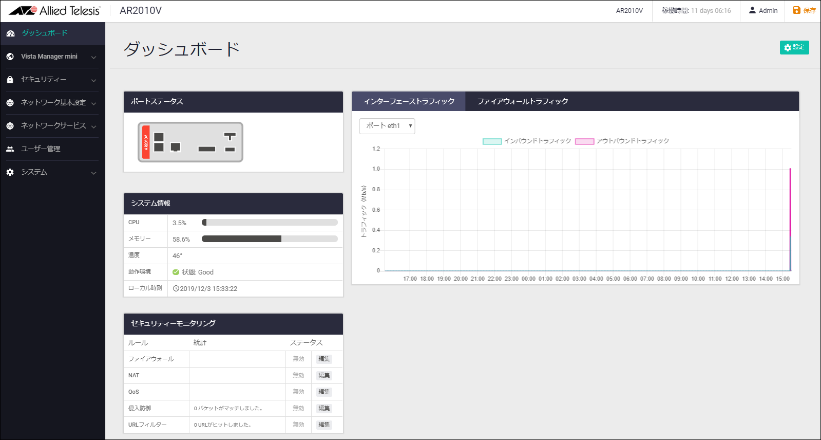 これらの自動設定はランニングコンフィグに対してのみ行われますが、Web GUIへのログイン後にナビゲーションバーの「保存」ボタン等で設定を保存した場合は、これら自動設定の内容も設定ファイルに書き込まれますので、必要に応じて設定内容を確認し、不要な設定の削除や設定変更を行ってください。Web GUIでは「システム」>「CLI」メニューから仮想コンソールを開くことで、CLIによる設定の確認や変更が可能です。