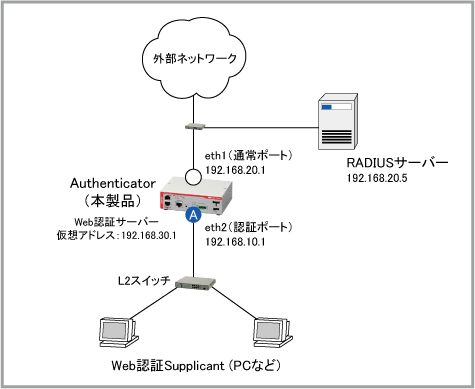 本製品は、Ethernetインターフェース上のポート認証機能としてWeb認証機能を実装しています。